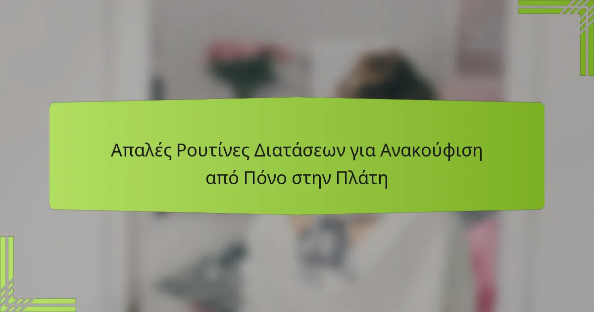Οι ήπιες ρουτίνες διατάσεων για την ανακούφιση από τον πόνο στην πλάτη περιλαμβάνουν συγκεκριμένες κινήσεις που έχουν σχεδιαστεί για να βελτιώνουν την ευλυγισία και να μειώνουν την ένταση στους μυς της πλάτης. Αυτές οι ρουτίνες μπορούν να βοηθήσουν στην ανακούφιση της ενόχλησης και να ενισχύσουν τη συνολική κινητικότητα, καθιστώντας τις πολύτιμο μέρος της διαχείρισης του πόνου στην πλάτη.