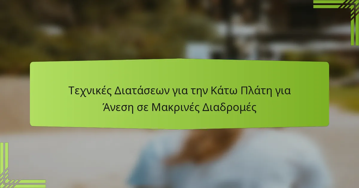 Η δυσφορία στην κάτω πλάτη κατά τη διάρκεια μακρινών διαδρομών μπορεί να είναι ένα κοινό πρόβλημα, συχνά προκαλούμενο από παράγοντες όπως η μυϊκή κόπωση και η κακή στάση. Ενσωματώνοντας αποτελεσματικές τεχνικές stretching, μπορείτε να ανακουφίσετε την ένταση και να βελτιώσετε την ευλυγισία, κάνοντάς σας να νιώσετε πολύ πιο άνετα κατά τη διάρκεια του ταξιδιού σας. Η τακτική stretching όχι μόνο ανακουφίζει τη δυσφορία αλλά και ενισχύει την κυκλοφορία, επιτρέποντας μια πιο ευχάριστη διαδρομή.