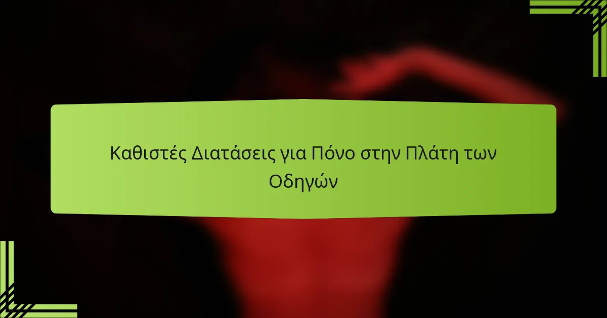 Ο πόνος στην πλάτη για τους οδηγούς προέρχεται συχνά από την παρατεταμένη καθιστική θέση, την κακή στάση και την έλλειψη κίνησης. Αυτοί οι παράγοντες μπορούν να οδηγήσουν σε μυϊκή ένταση και κοινές τραυματισμούς, οι οποίοι μπορεί επίσης να επιδεινωθούν από ψυχοσωματικά στοιχεία.