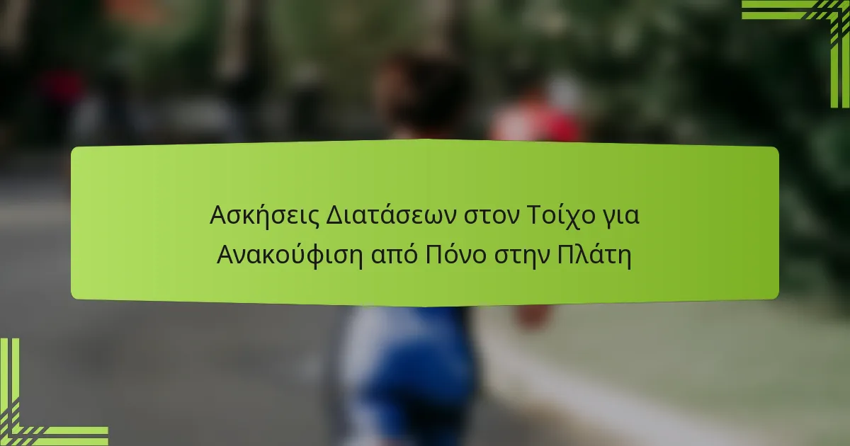 Οι ασκήσεις διάτασης με τοίχο μπορούν να ανακουφίσουν σημαντικά τον πόνο στην πλάτη βελτιώνοντας την ευλυγισία και μειώνοντας την μυϊκή ένταση. Αποτελεσματικές διατάσεις περιλαμβάνουν τη διάταση γάτας στον τοίχο, τη διάταση των ισχίων στον τοίχο, τη διάταση του στήθους στον τοίχο και τη διάταση πλευράς στον τοίχο, κάθε μία στοχεύει σε διαφορετικές ομάδες μυών που συμβάλλουν στη δυσφορία στην πλάτη.